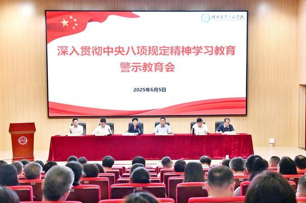 本报讯 6月5日下午,学校召开深入贯彻中央八项规定精神学习教育警示教育会,深入学习贯彻习近平总书记关于加强党的作风建设的重要论述和重要指示批示精神,以典型案例为镜鉴,推动作风建设走深走实。学校党委书记翟雪梅主持会议并讲话,学校领导班子成员、...