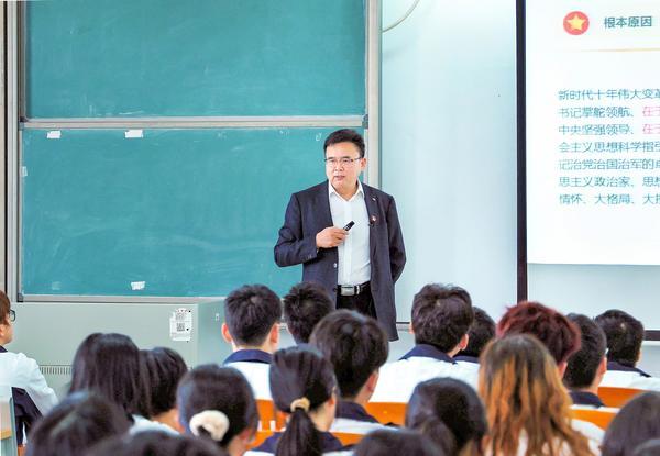 本校讯(党委宣传部 龚慧枫)3月10日上午,校党委书记宋垚臻以“深入学习贯彻党的二十大精神 踔厉奋发推动学校高质量发展”为题,在白云校区为管理学院市营211—213班的同学开讲春季学期“思政第一课”,教育引导青年学子在习近平新时代中国特色社...