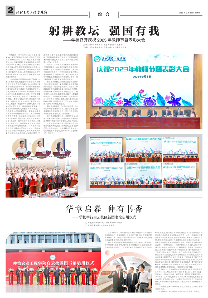 秋菊溢彩,桃李芬芳。9月8日上午,在第39个教师节即将来临之际,学校在白云校区行政楼报告厅召开庆祝2023年教师节暨表彰大会,向辛勤耕耘、无私奉献的全体教职工致以节日的问候,并表彰多位在学校建设和教书育人等方面取得优秀成绩的教师。全体校领导...
