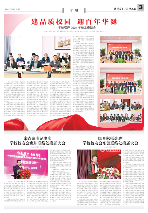 1月6日上午,时值小寒,仲园内却暖意盎然。学校2024年校友座谈会在白云校区图书馆一楼报告厅举行,来自全省各地的校友代表齐聚一堂,聚焦品质校园建设,共商百年华诞盛事。学校党委书记宋垚臻,党委副书记、校长廖 明出席会议并讲话,党委常委、副校长...