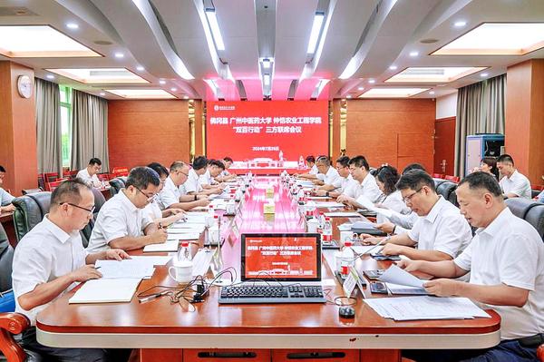 本报讯(发展规划部) 7月26日上午,学校在海珠校区教学楼409会议室召开我校与广州中医药大学、佛冈县“双百行动”三方联席会议。学校党委书记宋垚臻、广州中医药大学党委书记陈文锋、佛冈县委书记潘国标出席会议并讲话。会议由学校党委常委、副校长...
