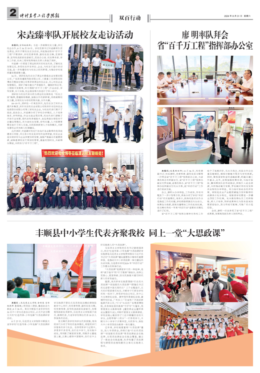 本报讯(宣传统战部) 为进一步凝聚校友力量,深化校企合作,8月16至19日,学校党委书记宋垚臻率队前往清远、深圳开展校友走访活动,并就推动服务“百千万工程”开展调研。学校党委常委、副校长张文峰,党委常委、宣传统战部部长曾献尼,党政办公室、...