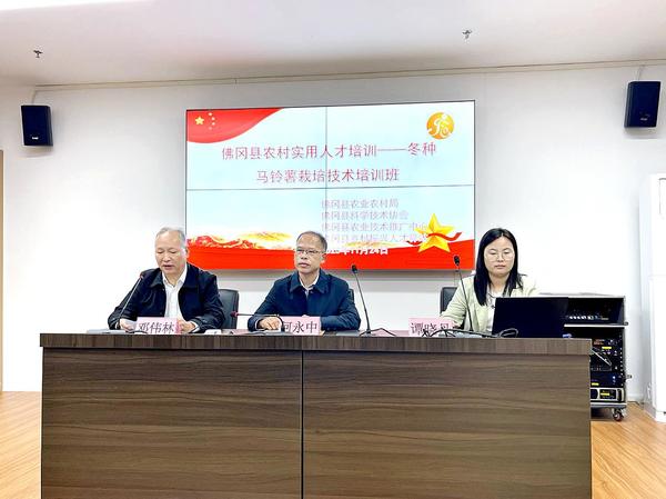 11月24日,农业与生物学院谭晓丹博士、杨永博士一行赴佛冈县开展冬种马铃薯栽培技术指导讲座。佛冈县科学技术协会主席何永中、县农业农村局农业技术推广中心主任邓伟林、马铃薯种植大户、基层农技人员及学校“双百行动”工作队副队长苏登共同参与讲座。谭晓丹以“冬种马铃薯优质高产栽培技术”为题,对马铃薯的分类、起源、概况及营养等方面做了详细的介绍。她详尽地讲解了冬种马铃薯品种选择、选地与整地、种薯贮存和切块、苗期田间管理、病虫害防治、收获与贮藏等各环节的关键技术与注意事项,最后介绍了黑膜覆盖、“稻-稻-薯”三熟轮作等种植技术和种植模式。学员们纷纷互动交流在实际种植过程中遇到的难题。