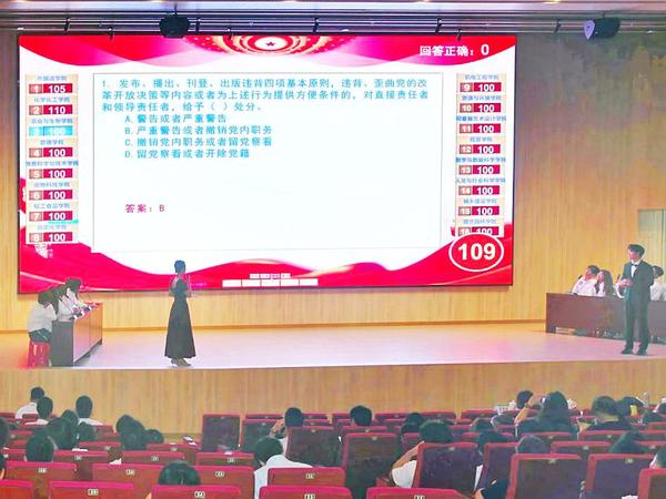 本报讯 (宣传统战部 曾献尼 龚慧枫 池 月)党纪学习教育开展以来,仲恺农业工程学院牢牢把握目标要求,聚焦深入学习贯彻新修订的《中国共产党纪律处分条例》(以下简称《条例》),坚持真抓实学、强化解读培训、注重融入日常,着力在“学、严、行”上下功夫,引导广大党员干部学纪、知纪、明纪、守纪,为全力推进高质量发展提供坚强纪律保障。