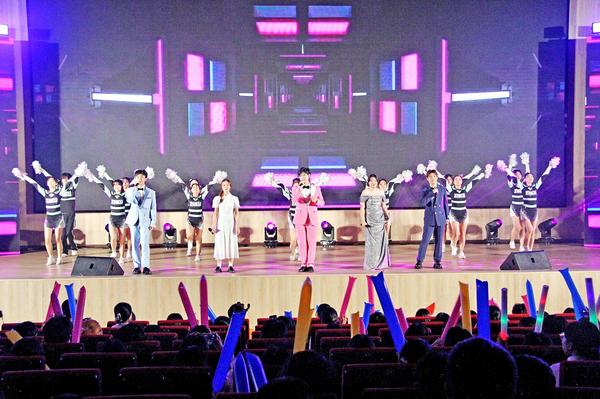 校广播台带来的诗朗诵《青春誓言》表达了不忘初心、砥砺前行的强国之志和报国之情;校艺术团舞蹈队带来的《有我》,灵动飘逸、身姿优美,也透出愿以激昂青春为祖国不懈奋斗的英武与坚韧;轮舞青春节目中,街舞与轮滑碰撞出的激情火花,绝妙创意与新颖形式引发阵阵欢呼;《听你说》《跟着感觉走》《上春山》《像你这样的朋友》《青春歌单》歌曲串烧……一首首或激昂或悠扬的歌曲诠释了仲恺青年的青春活力和对未来的憧憬。其中《听你说》由两位青年教师解廷鑫、于昕塍特别演唱,师生同乐的高涨热情伴随着高高挥舞的荧光棒,将晚会现场变成了一片星星之海。