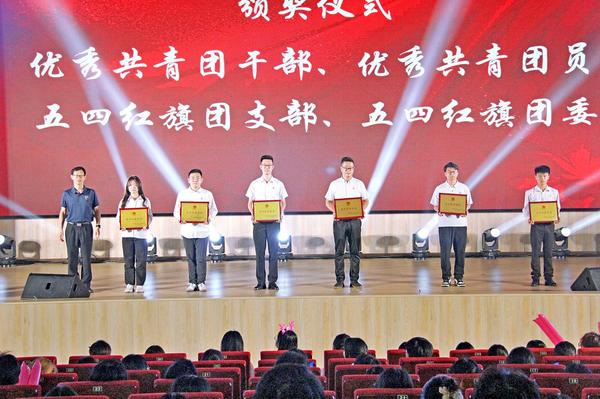 朱立学为荣获“五四红旗团委”“五四红旗团支部”荣誉称号的集体及荣获“优秀共青团干部”“优秀共青团员”荣誉称号的师生颁奖。