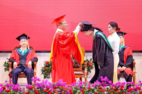 毕业典礼后,学校随即举行2024年学位授予仪式和拨穗礼。白云、海珠两校区的2024届毕业生代表将在6月19-23日分批次参加神圣庄严的拨穗仪式。现场所见,毕业生们依次走上主席台,接受廖 明校长拨穗。一次次亲切的握手,一声声温暖的“毕业快乐!”,一个个热情的拥抱,一帧帧同框的留影,定格下这一美好难忘且意义非凡的时刻。