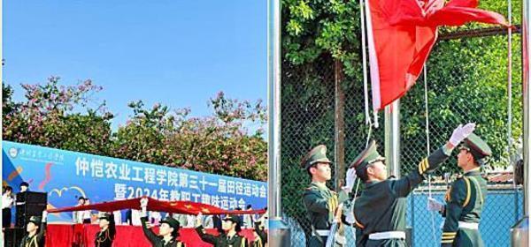 伴随着激昂奋进的运动员进行曲,身姿矫健的国旗护卫队和校旗队迈步而至,鲜花队、彩旗队和红旗队依次入场,紧随其后的是各二级学院和机关工会方阵,他们步伐稳健、列队整齐、口号响亮、气势磅礴,充分展现仲恺师生蓬勃朝气和昂扬向上的精神面貌。