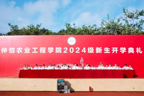 廖明代表全校师生员工,向2024级新生表示祝贺和欢迎,向关爱和支持同学们成长的父母师长及社会各界致以感谢和敬意。他指出,学校的诞生与发展,从来都离不开厚重的历史底色,从来都根植于爱国的精神内涵。学校始终与国家同频共振,为时代所需培养人才、贡献力量,新时代仲恺人要肩负起农业农村现代化建设的历史重任。廖明寄语新生,一是要胸怀国家,志存高远,让梦想发出芽。希望同学们在时代发展中找准正确的坐标,在国家和民族的事业中找到梦想,描绘蓝图,努力成为梦想中的样子。二是要勤学不辍,厚积薄发,让奋斗开出花。大学是学知识长才干的关键时刻,同学们要珍惜大学时光,保持紧迫感和危机感,一门心思积累才干,踏踏实实学知强能,为走好人生航程储能蓄电。三是要勇于创新,学以致用,让求知结出果。要立足实践,积极走出教室、宿舍和手机,走出舒适区,走向生产一线,走向社会大课堂,在不同领域的交融与碰撞中开拓新视野,启迪新思路,发现新可能,寻找新突破,不断淬炼真才实干,提升完善自我。