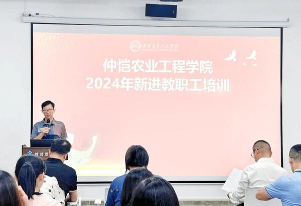 本报讯(教学质量监测与评估中心(教师发展中心))9月23日上午,2024年新进教职工培训开班式在白云校区图书馆2楼教师发展中心活动空间顺利举行。学校党委副书记、校长廖 明出席开班式并为新进教职工讲授“第一课”,党委常委、副校长朱立学作动员讲话。38名新进教职工参加开班式。