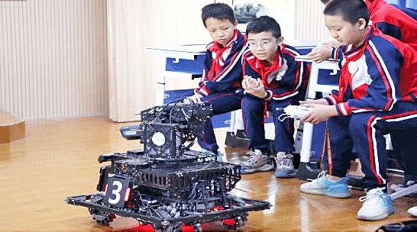 在留隍第二中心小学的科普讲堂上,自动化学院奇点战队的大学生代表们通过深入浅出的讲解,让小学生们进一步了解了机器人的定义、分类及应用,知晓机器人的基本构造,了解机甲大师的赛事规则,并深入探究英雄机器人如何通过传感器感知并适应作战环境。课后,奇点战队的大哥哥大姐姐们与7年级(2)班的小弟弟小妹妹们进行了机器人对抗赛——三种竞技模式,六种神器技能,多兵种协同作战,自动目标识别跟踪,沉浸式射击体验。