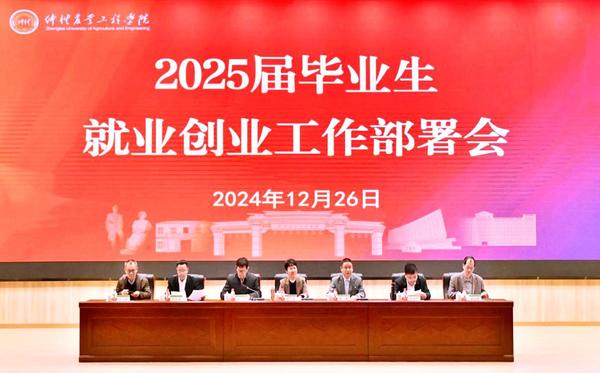 本报讯(学生工作部 张小翠)为进一步贯彻落实党中央、国务院以及省委、省政府关于高校毕业生就业创业工作的会议精神,动员部署2025届毕业生就业创业工作,12月26日,学校在白云校区图书馆报告厅召开2025届毕业生就业创业工作部署会。学校党委书记翟雪梅,党委副书记、校长廖明,党委副书记朱立学,党委常委、副校长肖更生、田允波、林俊睦、张文峰出席会议。各职能部门处级干部、各二级学院领导班子成员、全体一线专职辅导员,学生工作部、创新创业教育学院相关人员参加会议。会议由廖明主持。