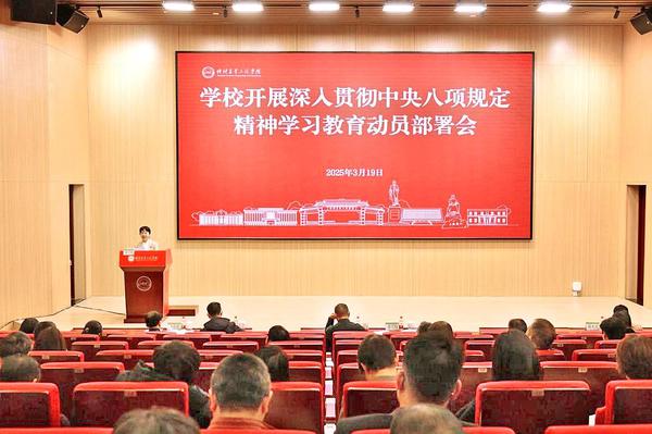会议强调,开展深入贯彻中央八项规定精神学习教育,是学校当前一项重大政治任务,必须抓紧抓实抓好:一是要提高政治站位,深刻认识开展学习教育的重要意义。切实把思想和行动统一到党中央决策部署和省委工作安排上来,高标准、严要求开展学习教育,锲而不舍落实中央八项规定精神,汇聚起推动学校高质量发展的强大合力。二是要聚焦重点任务,有力推动学习教育扎实高效开展。各二级党组织要深入贯彻落实党中央、省委决策部署和学校党委工作安排,扎实开展学习研讨,坚持领导干部带头学、组织广大党员普遍学,加强教育培训系统学,推动中央八项规定及其实施细则精神入脑入心、见之于行。三是要加强组织领导,切实提升学习教育工作成效。学校学习教育工作专班要抓好统筹协调、督促指导;各二级党组织要切实扛起主体责任,认真谋划安排,精心组织实施;二级党组织主要负责同志要担负起第一责任人责任,领导班子其他成员要履行好“一岗双责”,全覆盖、全过程推动深入贯彻中央八项规定精神学习教育有序有效开展。
