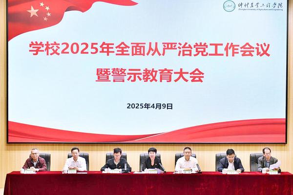 本报讯(宣传统战部 龚慧枫) 4月9日上午,学校在白云校区德新楼学术报告厅召开2025年全面从严治党工作会议,党委书记翟雪梅出席会议并讲话,党委副书记、校长廖明主持会议。党委副书记朱立学、党委常委、副校长肖更生、田允波、林俊睦、张文峰出席会议。全体中层干部、各二级党组织纪检委员、学校第二期特约监察员、纪检监察室全体人员参加会议。