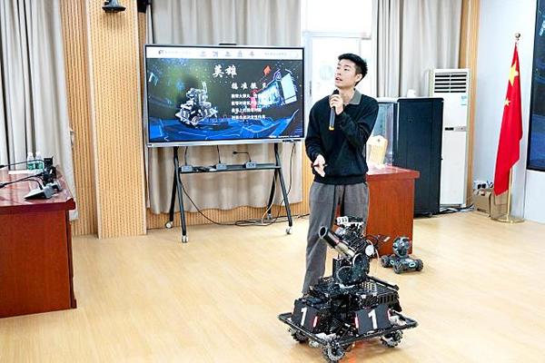 在丰顺一中的报告厅内,蒋东老师向学生们展示了“机甲大师”英雄机器人项目,详细介绍了机器人构造、编程原理、感知技术和任务执行逻辑,并结合视频与现场实物操作进行演示。