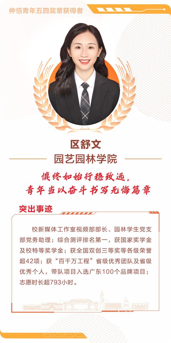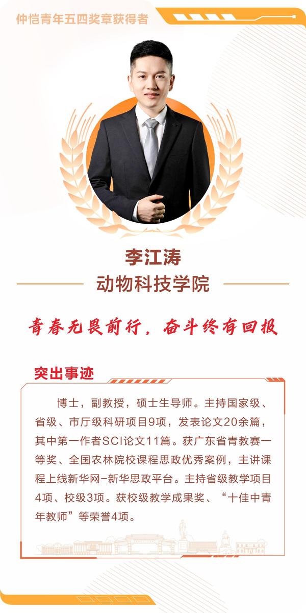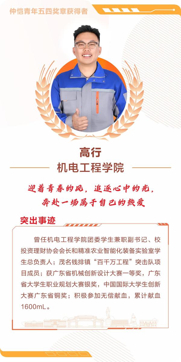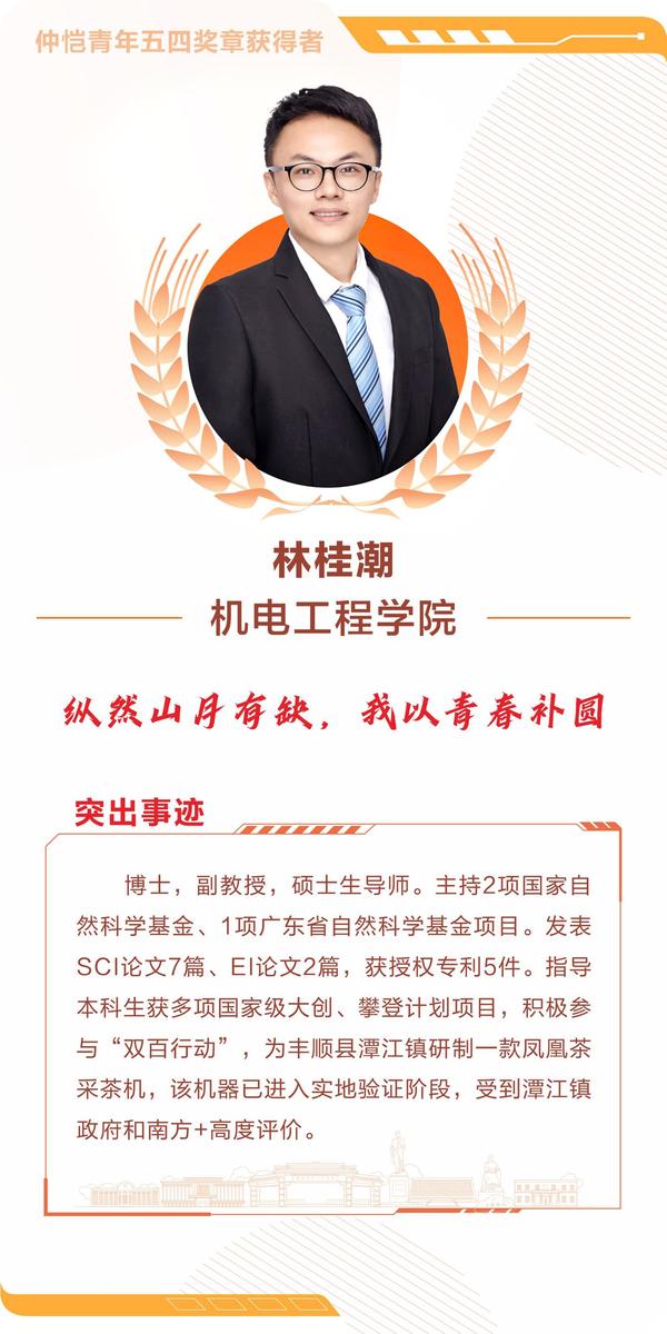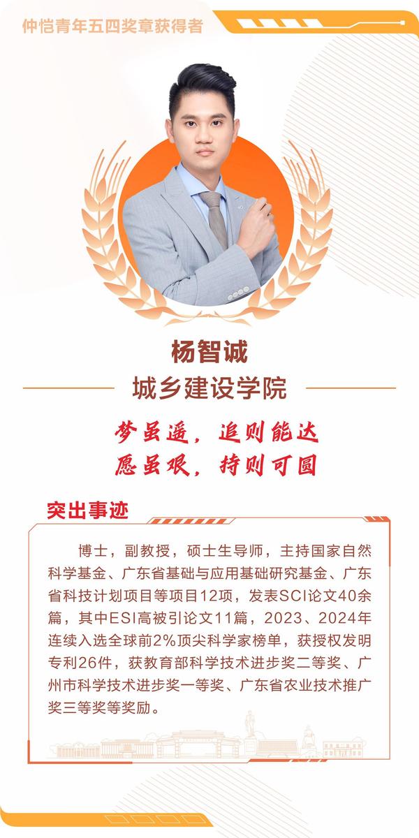 青春如炬,榜样如光。在“仲恺青年”中有这么一群追光者,他们以奋斗为笔,在教学科研、学业钻研、乡村振兴、逆境拼搏中书写青春华章。他们中有人扎根实验室点亮科技微光,有人深耕育人一线匠心浇筑成才之路,有人躬身实践为乡村振兴注入活力,更有人以自强诠释生命的力量。10位青年虽身处不同领域,却共同闪耀着新时代青年的担当光芒。走近他们,感受平凡身躯里迸发的非凡力量,让青春在追随光、成为光、散发光中绽放最美姿态。