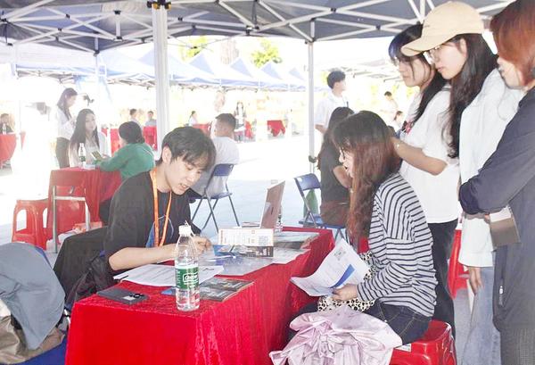 本报讯 (学生工作部、宣传统战部) 11月6日下午,由广东省教育厅主办、我校承办的“就在南粤”广东省2026届普通高校毕业生系列供需对接活动——乡村振兴暨“百千万工程”高质量发展人才专场(综合类专场)在我校白云校区图书馆正门前广场举行。学校党委常委、副校长林俊睦,广东省教育厅就业创业处副处长周贵出席活动并现场指导工作,学生工作部班子成员,各二级学院党委副书记以及毕业班辅导员等到场与各企业招聘负责人及毕业生展开深入交流。